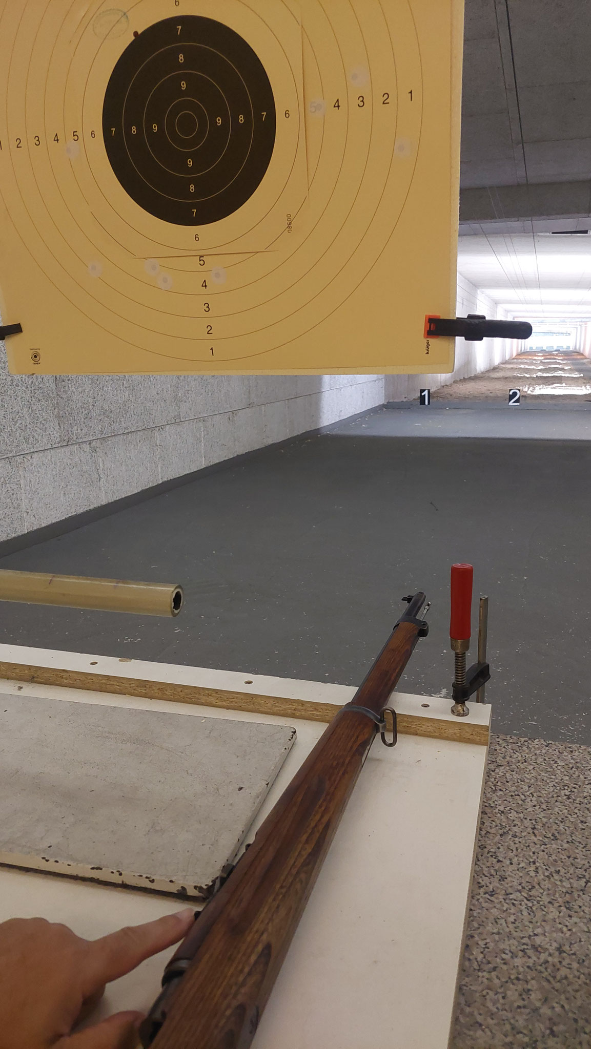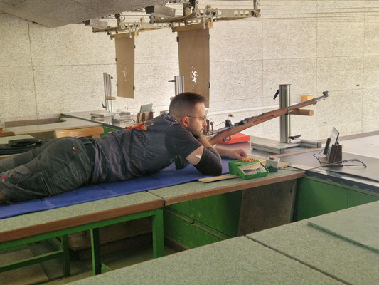 Der Vorjahressieger, Dirk Hofmann, hatte als Wettkampfwaffe ein Schweizer Ordonnanzgewehr im Kaliber 7,5 x 55 mm ausgewählt. Mit dieser wurde sitzend aufgelegt auf eine Entfernung von 50m geschossen. Der Herausforderung stellten sich 44 Schützen und 8 Schützinnen. Jeder der 52 Teilnehmer hatte einen Probeschuss und drei Wertungsschüsse, so dass die maximale Ringzahl 30 Ringe betrug. Durch den großen Andrang kam es immer wieder zu Wartezeiten, die aber kein Mitglied abschrecken konnte.